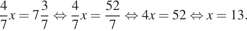 Знайдіть корінь рівнян­ня: дробь: чис­ли­тель: 4, зна­ме­на­тель: 7 конец дроби x= целая часть: 7, дроб­ная часть: чис­ли­тель: 3, зна­ме­на­тель: 7 .