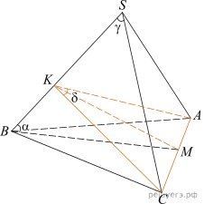 Відповідно до умови завдання 31 (№ 3482) сторона основи правильної трикутної піраміди дорівнює 3. Бічні ребра нахилені до основи під кутом α.