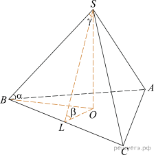 Сторона основи правильної трикутної піраміди дорівнює 5. Бічні грані нахилені до основи під кутом β.